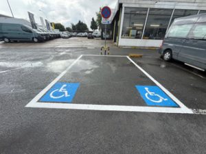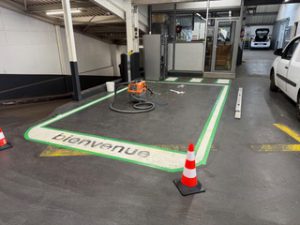Dans ces différents chantiers, il s’agissait de refaire la peinture au sol de places de parking.
