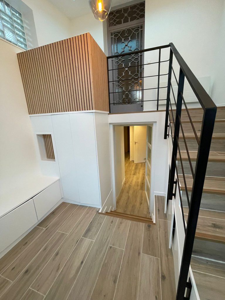 Les photos ci-dessous illustrent différents travaux de menuiserie qui ont été réalisés comprenant un escalier intérieur.